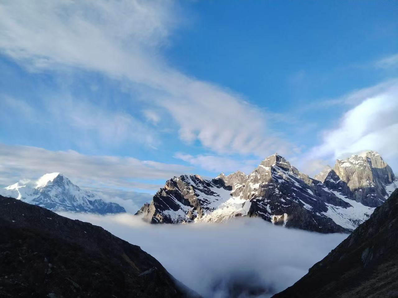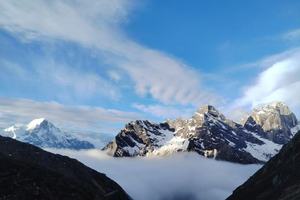 早上8点早餐后乘车大约40分钟到达子梅垭口,观赏到包括那玛峰等卫峰在内的贡嘎雪山全景。这里是拍摄贡嘎雪山全景的最佳位置,一路行行摄摄,移步换景,徒步3公里,一路下坡到达河池布。在这里观赏贡嘎雪山倒影,运气好,还可观赏到莫溪沟云海和佛光。