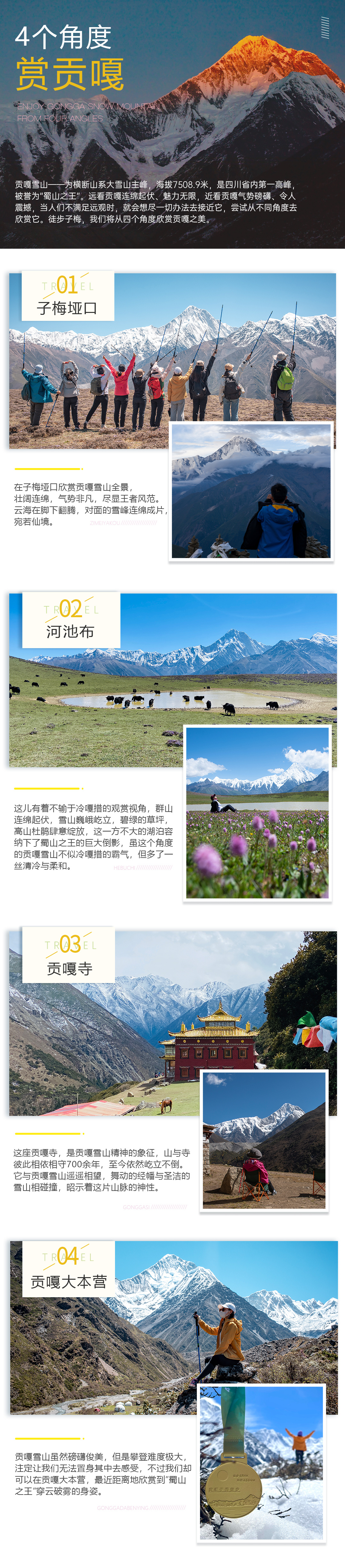 子梅垭口大家都知道线路上一直是和冷嘎措相结合的,或者一些穿越线路结合,今天我们为大家分享的就是子梅垭口—河池布—草科的徒步路线,这里是近距离观看蜀山之王贡嘎雪山的绝佳之地,更有独家机位河池布雪山视角。