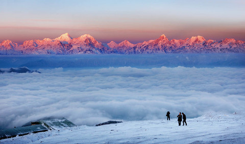 赶在晨光出现之前,从帐篷中苏醒,慢慢等待第一缕阳光探出头来,推门出去,空气可能有些寒冷,但眼前的金光与神山,绝对足够震慑你的内心。待天下大亮之后,水汽大量凝结在脚下,云海渐出,犹如要把你托举起来,是绝无仅有的云上视角。
