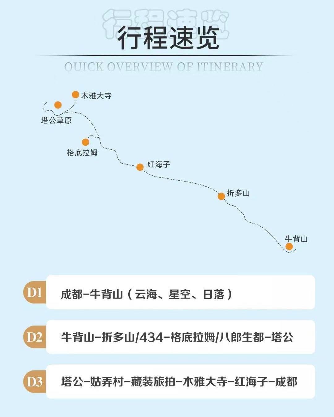 ■ 不提供专业导游服务,仅安排中文司机负责行程活动中接待服务司机不进景区(牛背山除外,牛背山师傅门票已包含);