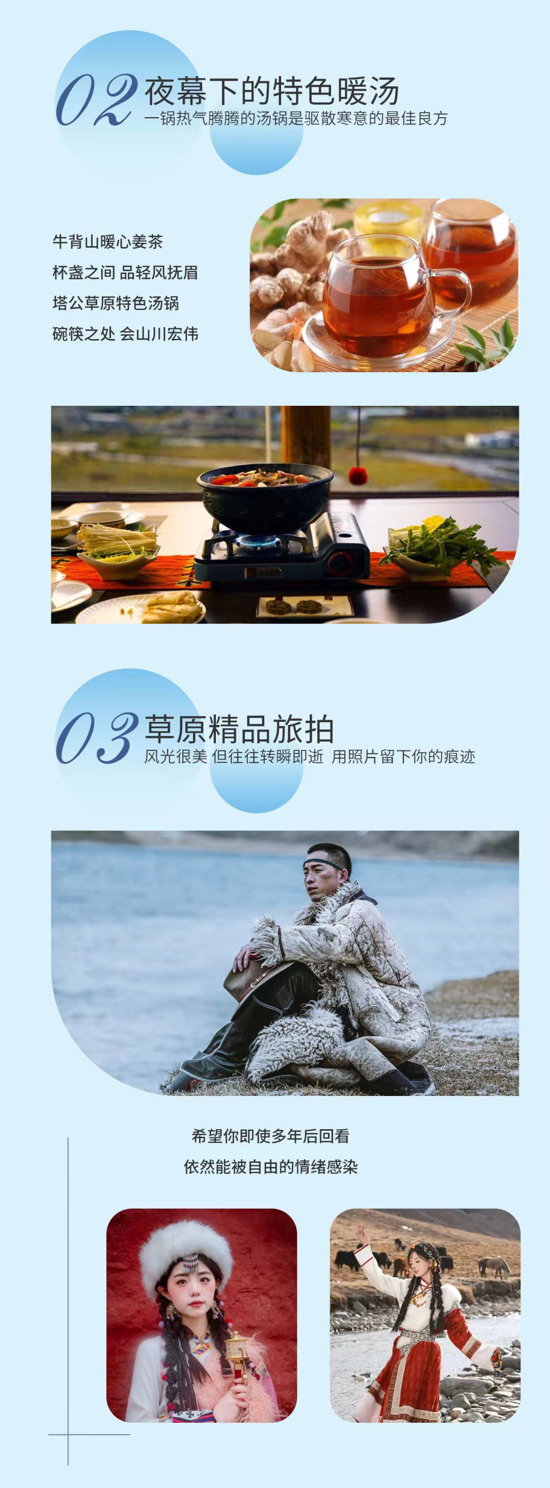 2、此活动线路涉及藏区高海拔地区,5岁以下儿童不宜参加;孕妇和婴儿以及有心、肺、脑和血液系统疾病患者和70岁以上老人,出行旅游前应遵医嘱,谨慎出行,请视身体情况而定,量力而行。