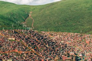 这里有连绵数公里层层重叠的僧舍,身披绛红色僧袍的喇嘛和觉姆,象征着最高布施和神圣的天葬仪式。城市里所有的车水马龙和灯红酒绿在这里不复存在,只有生活在精神信仰中的苦行僧们,转山转水转佛塔,不修今生。