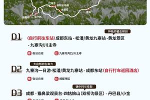 D1(自行前往东站)成都东站 - 松潘/黄龙九寨站 -黄龙景区 - 九寨沟/川主寺