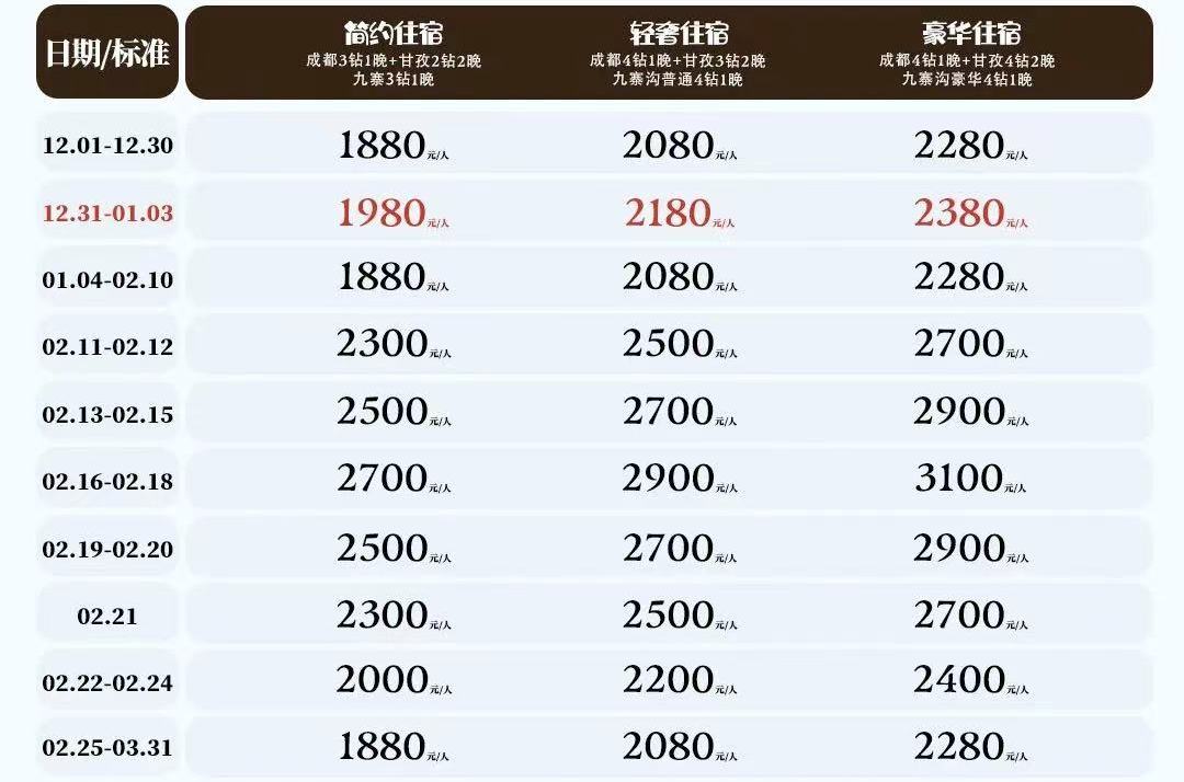 1、价格默认常规团期简约标间费用,其他团期费用参考小程序报价