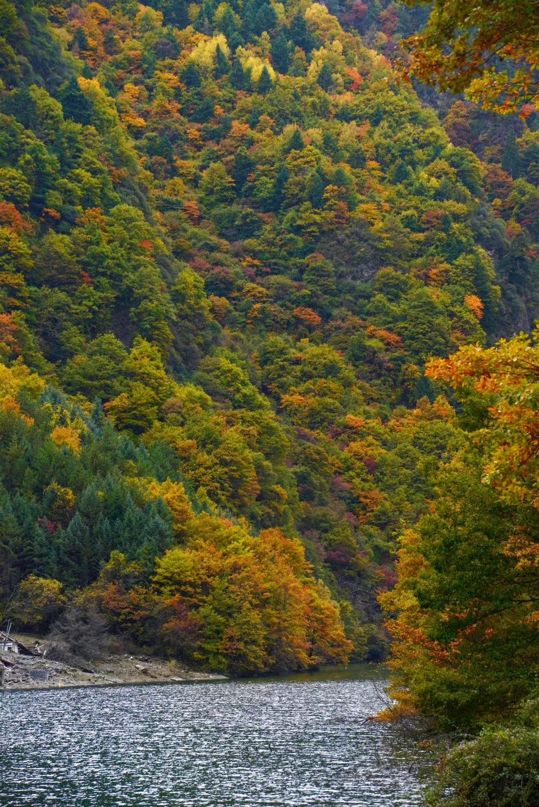 奶子沟彩林洋洋洒洒长达八十里,蔚为壮观。树种主要由桦树、松树、柏树、枫树和各种乔木组成,还有不同色彩的针叶林、阔叶林、次生林、灌木丛点缀其间,密密麻麻地覆盖了一坡又一坡。