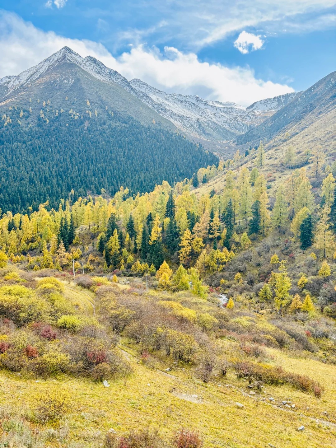 奶子沟距黑水县城20公里,位于省道302线黑水至雅克夏雪山之间。金秋时节,道路两旁的山谷层林尽染,美不胜收。