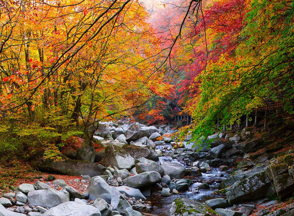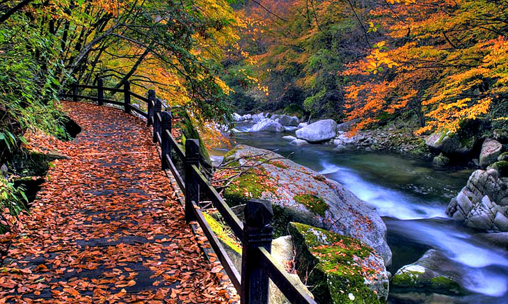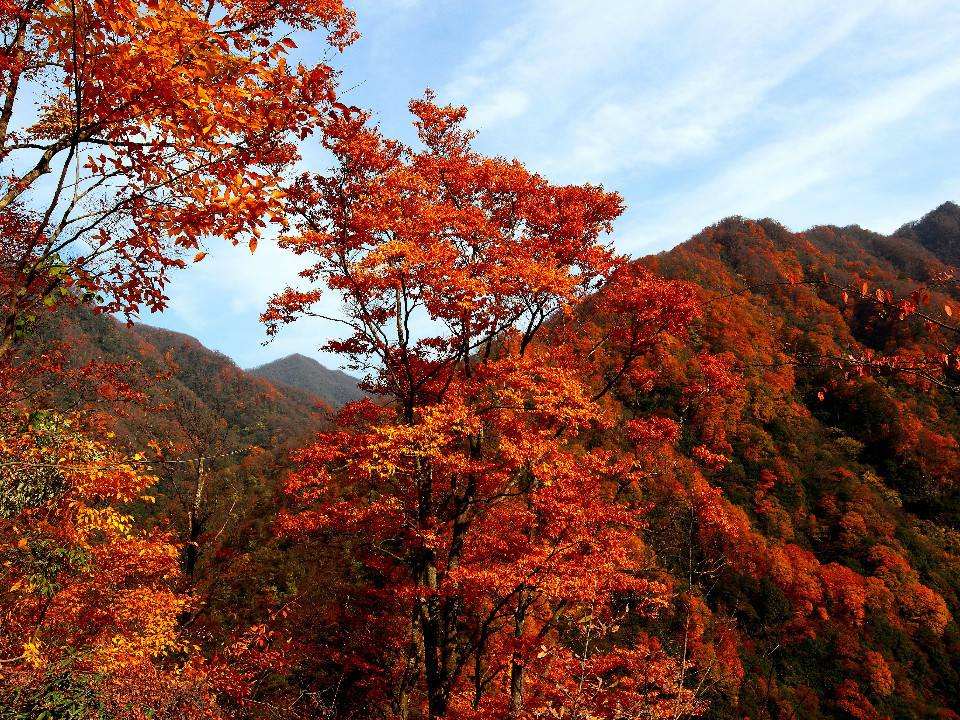 ▶下午行走在【黑熊沟】,满足对秋色的一切幻想。登高一次米仓山最高峰——【香炉山】,一览全景红叶,这可能是在中国其他地区体会不到的壮观景象。游玩结束后伴着黄昏前往南江县酒店入住。