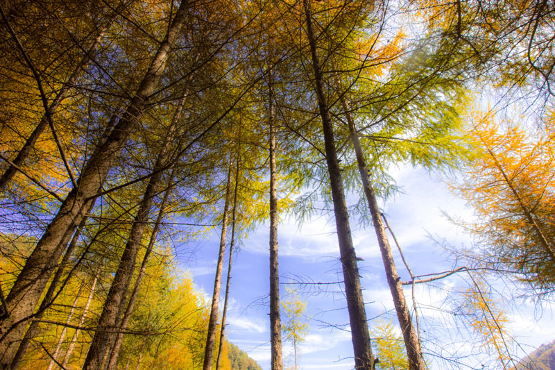“万美之中秋为最”,当漫天旋转的枯黄划出季节更替的规迹,秋林愈发显出她的秀颀与挺拔,那是一份不需要任何东西来装饰的洒脱和孤傲。