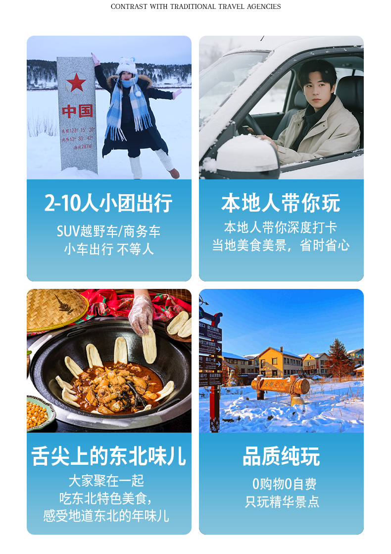 6、东北因地理环境、天气寒冷的特殊性,以及个人身体素质条件不同,可能会出现不同程度的不良反应(水土不服或温差较大引发的感冒等不良症状),建议根据自身情况做好相关评估和准备。行程中,若出现身体不适等不良反应,请及时通知服务人员或旅行社,旅行社将给予必要的协助,但产生额外的救助费用将由个人承担,我公司协助游客报保险,如决定中途退团的,仅退还未产生的门票费用。
