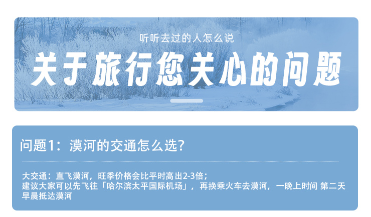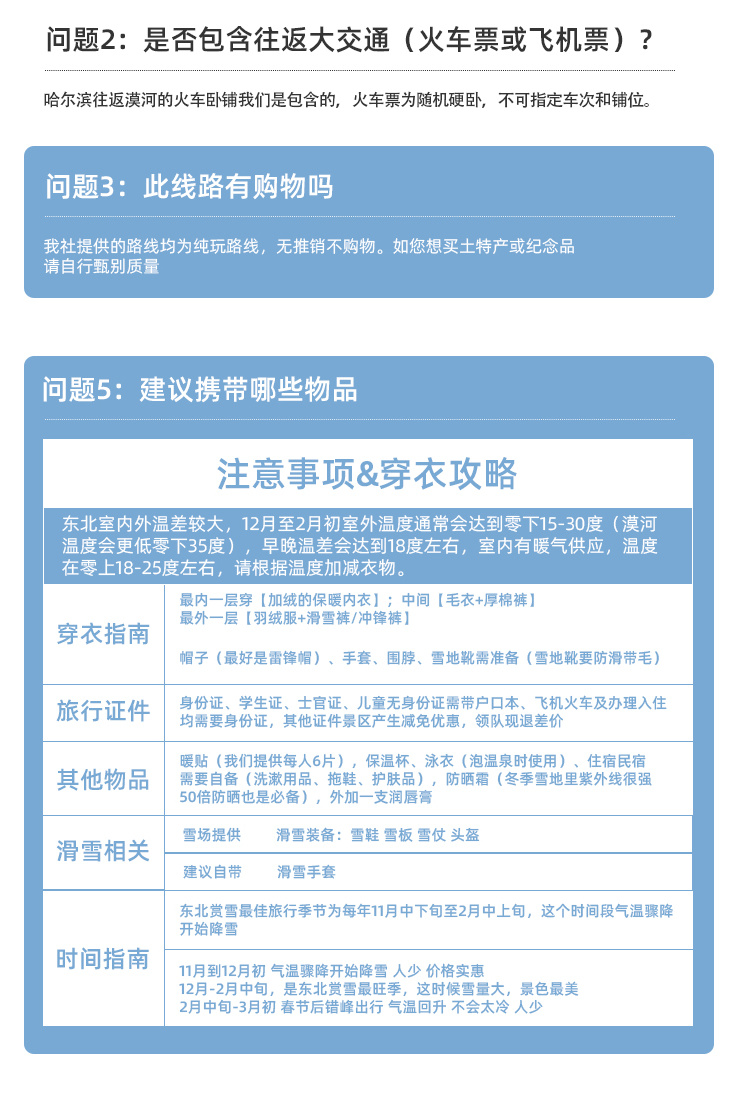 2、身高1.2米以下,为儿童价格(不含门票、不含酒店床位、早餐及哈尔滨到漠河往返火车卧铺);