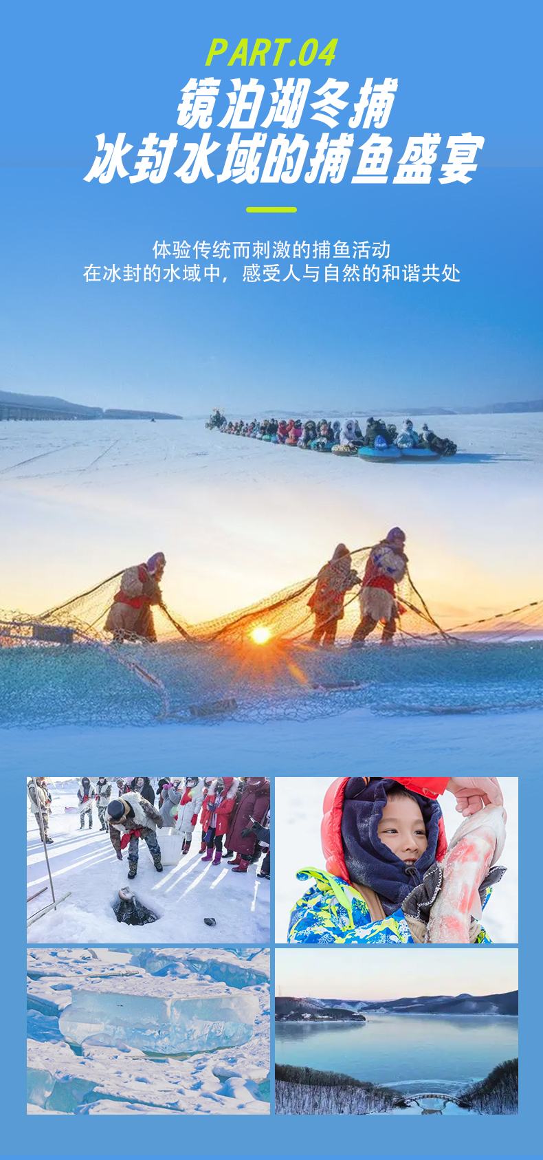 2、镜泊湖冬捕体验+雪地飞龙(每年12月下旬至2月下旬冰面厚度达到安全标准后赠送,其他时间不赠送)