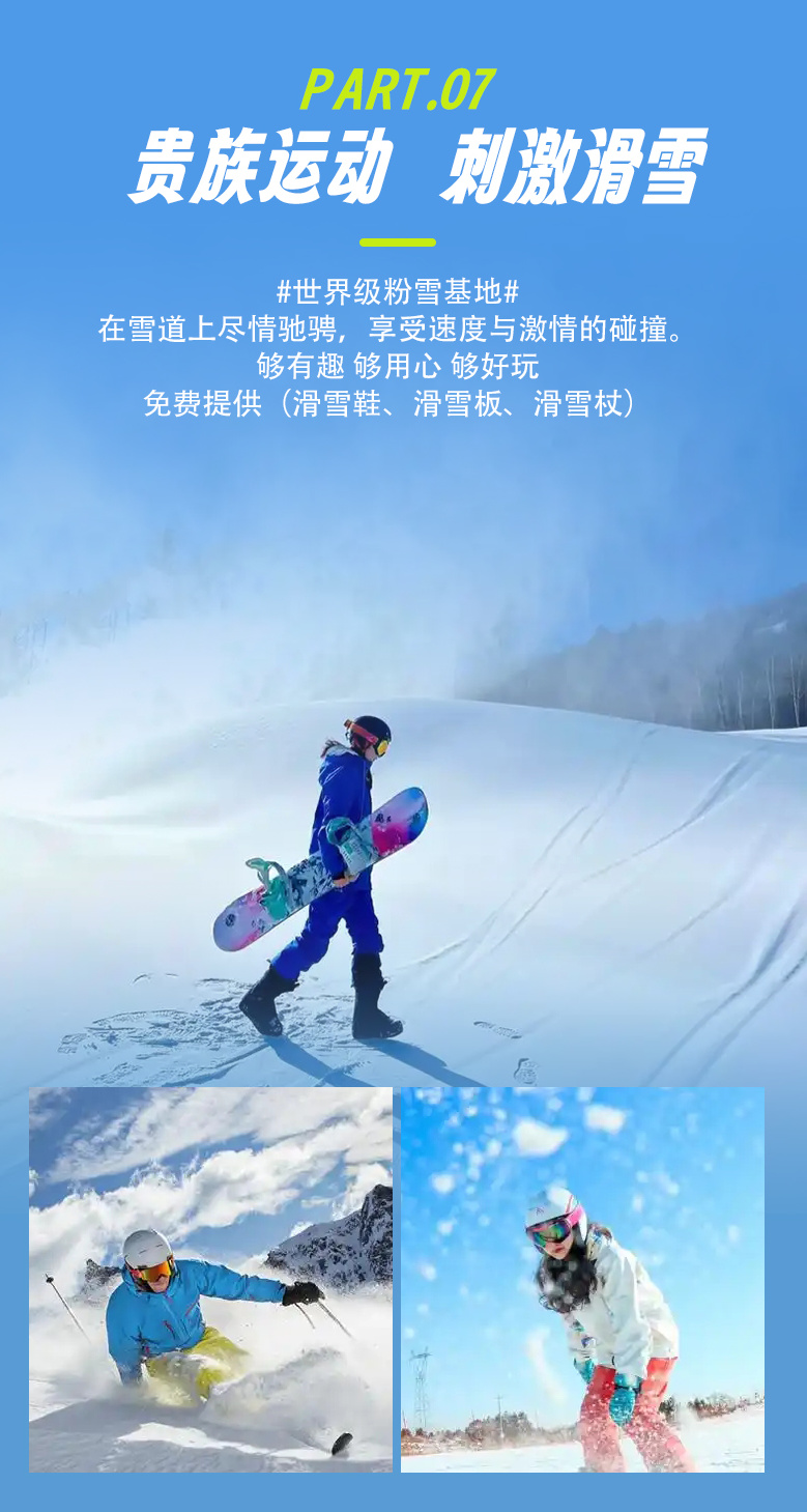 【门票】全程门票费:长白山北景区门票+景交车票、吉林滑雪场滑雪票(含雪杖/雪板/雪鞋/魔毯/雪圈)、冰雪画廊穿越、雪乡门票+景交车票