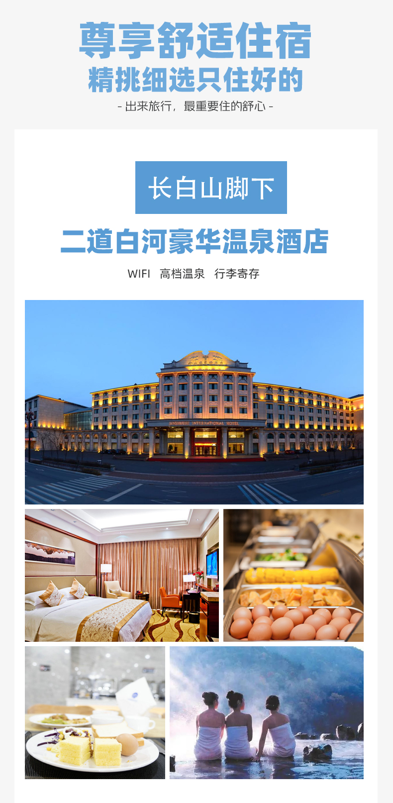 1、长白山温泉酒店室内外温泉1次(1.2米以下儿童免费,占床赠送,超高不占床儿童可现场购买)