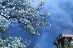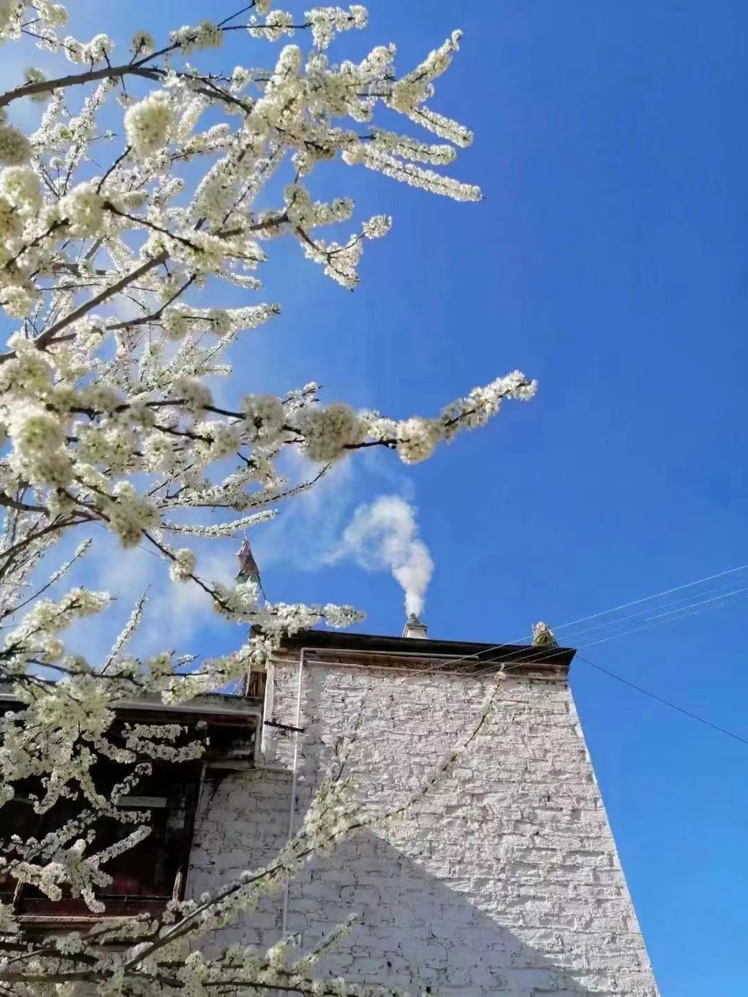 ▶早起拍摄日出,太阳在朝霞的迎接中,露出红彤彤的面庞。万道金光透过梨花树,美丽至极,随后领队带大家徒步中路村,拍摄梨花和古碉楼,和老奶奶磕家常。