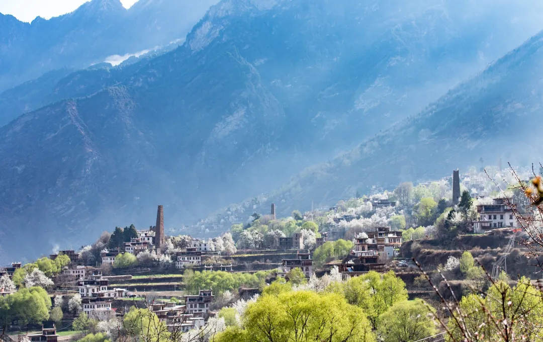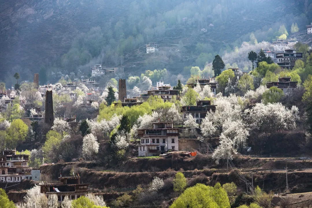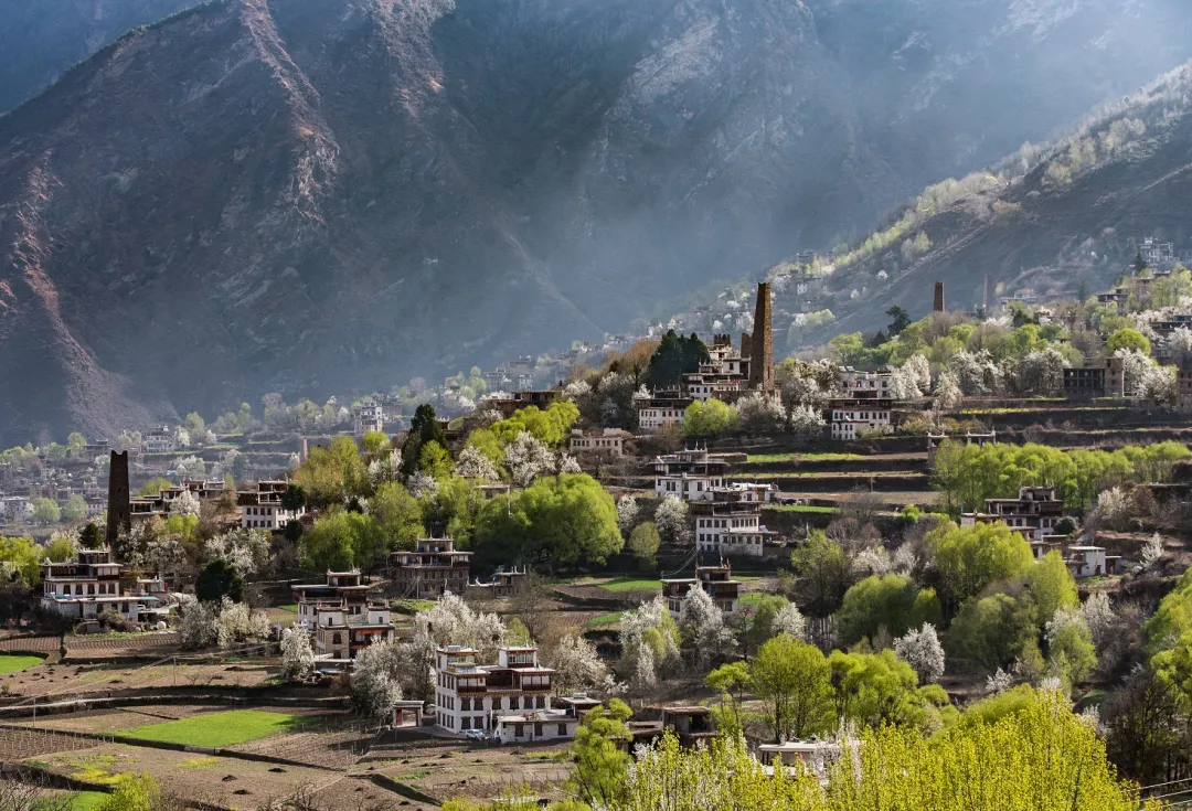 春天,无疑是丹巴最美丽的事后,晨光中的村寨,蜿蜒的河谷,更好的诠释了这里地名的意义:人神眷顾的向往之地。