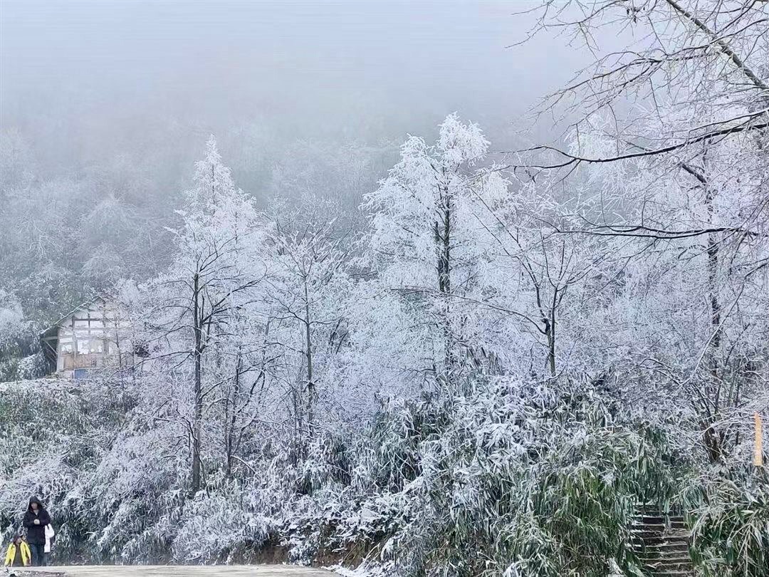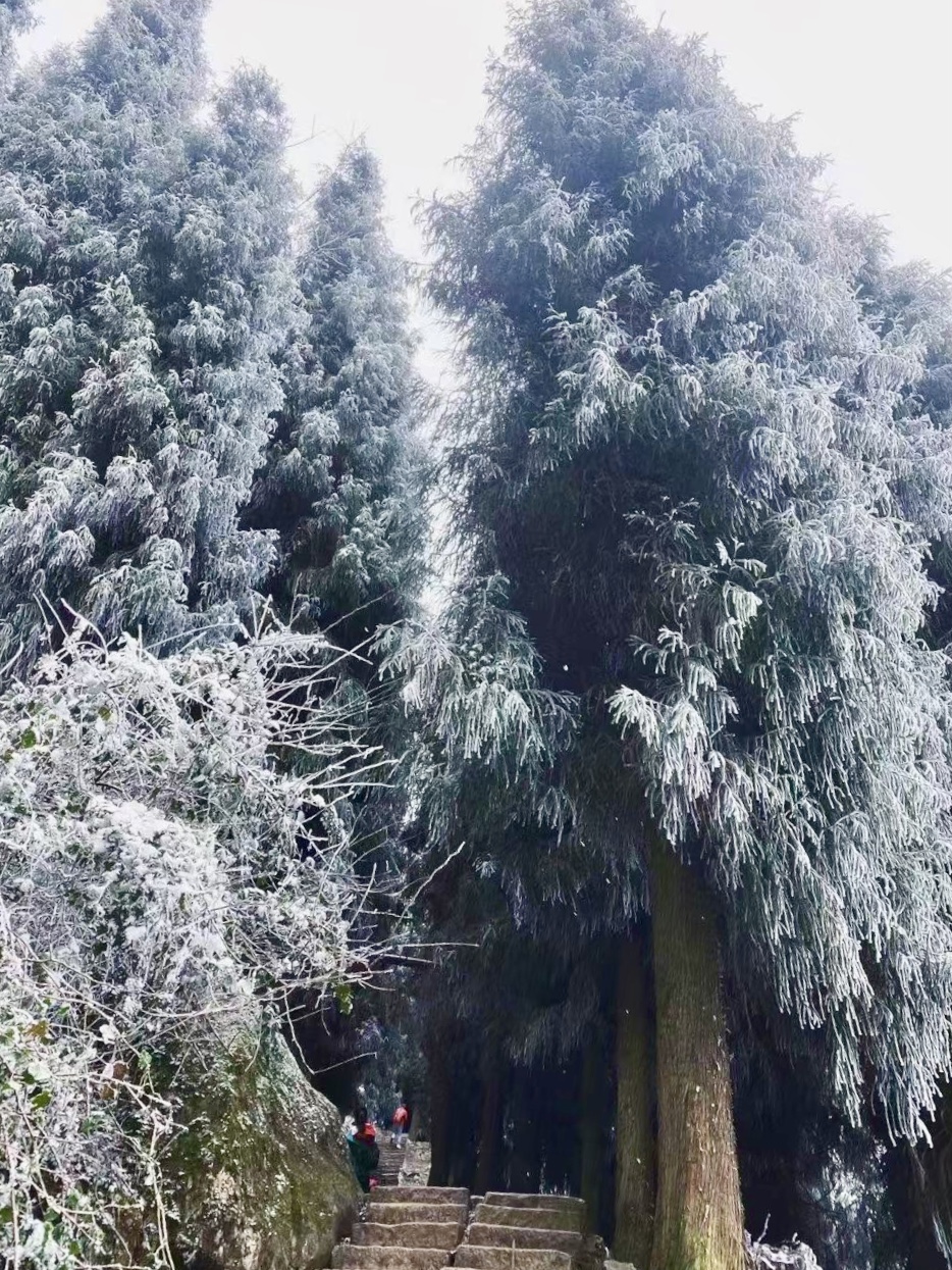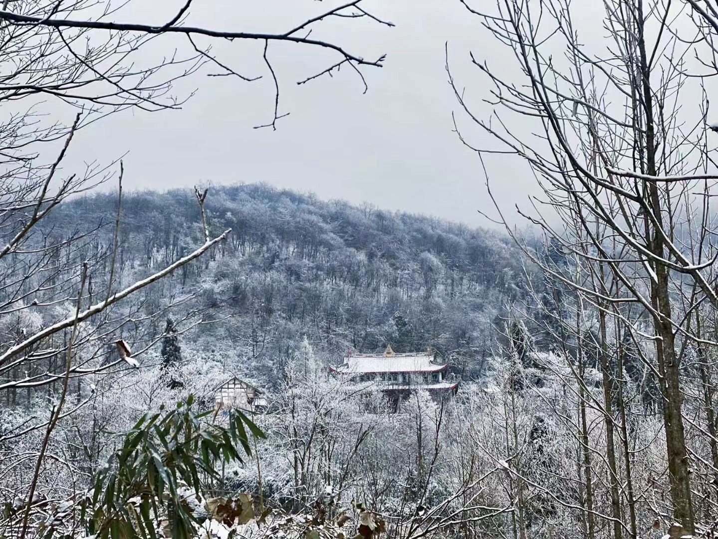 天气晴朗时,可以清晰地看见对面的九峰山。这里森林茂密、山势徒峻,冬天积雪最深可齐腰,是成都周边不可多得的冷门玩雪胜地。