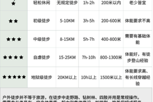 徒步风景 | 强度等级 | 适宜人群 |