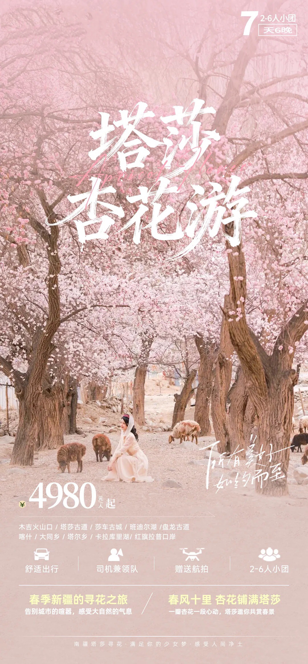 【花期说明】帕米尔高原的杏花,花期一般在3月下旬到4月初期间,不同海拔高度不同地方花开时间都不一样,我司会根据花开情况,灵活调整拍摄行程,zui大限度进行摄影创作;杏花花期较短,受气温及天气变化影响较大,系列团无法确保较佳的花期,请平常心看待,敬请谅解!