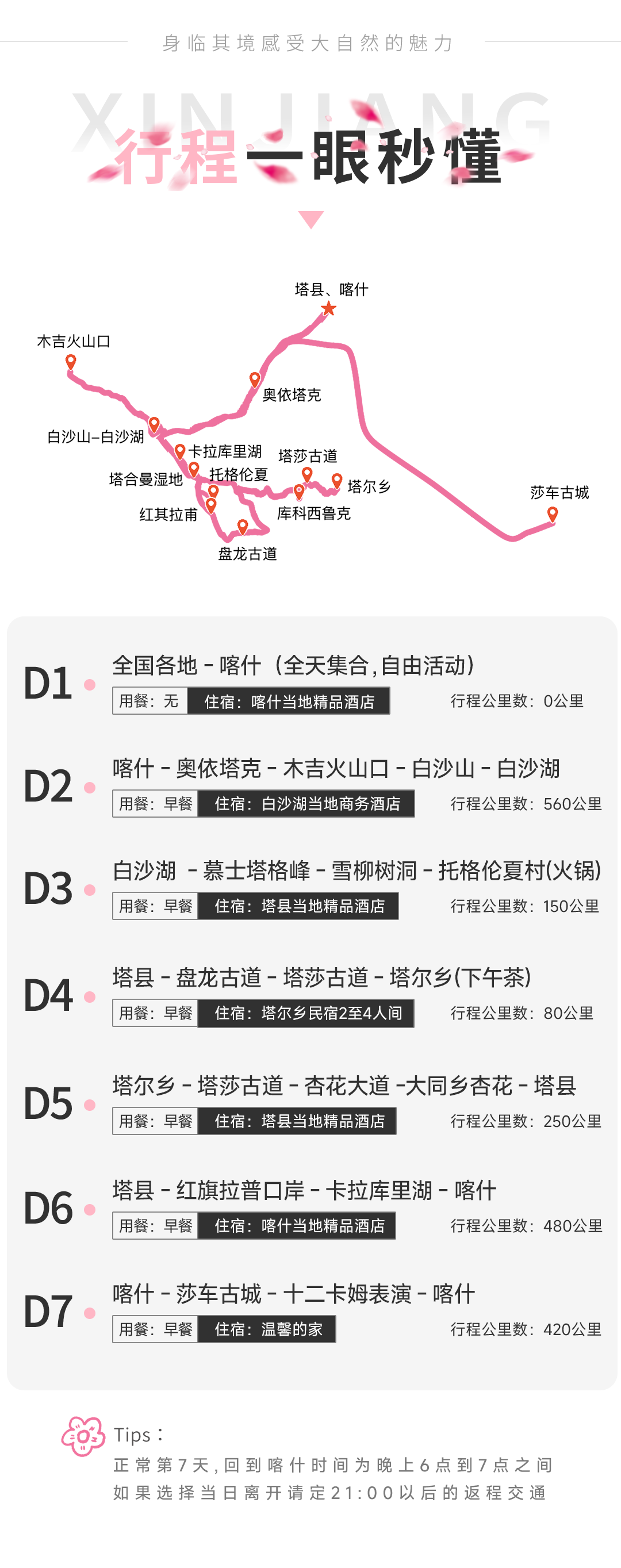 :塔尔乡日出→塔莎古道→杏花大道→大同乡杏花→塔县