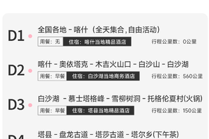【集合地点】喀什市区指定酒店,请报“绝色新疆”+姓名入住,酒店入住时间14:00后,提前抵达可将行李先寄存在酒店前台;