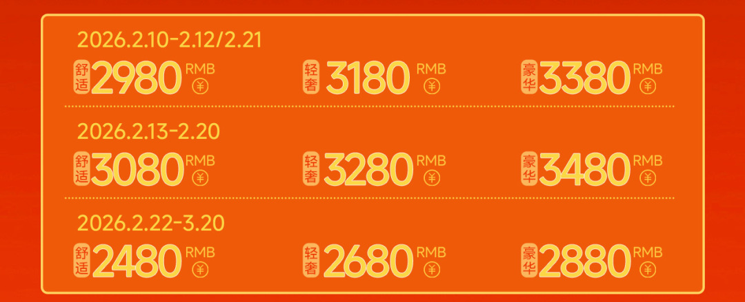 1、价格默认常规团期舒适型(全程2钻,供暖条件为电热毯)标间费用,其他团期费用参考小程序报价