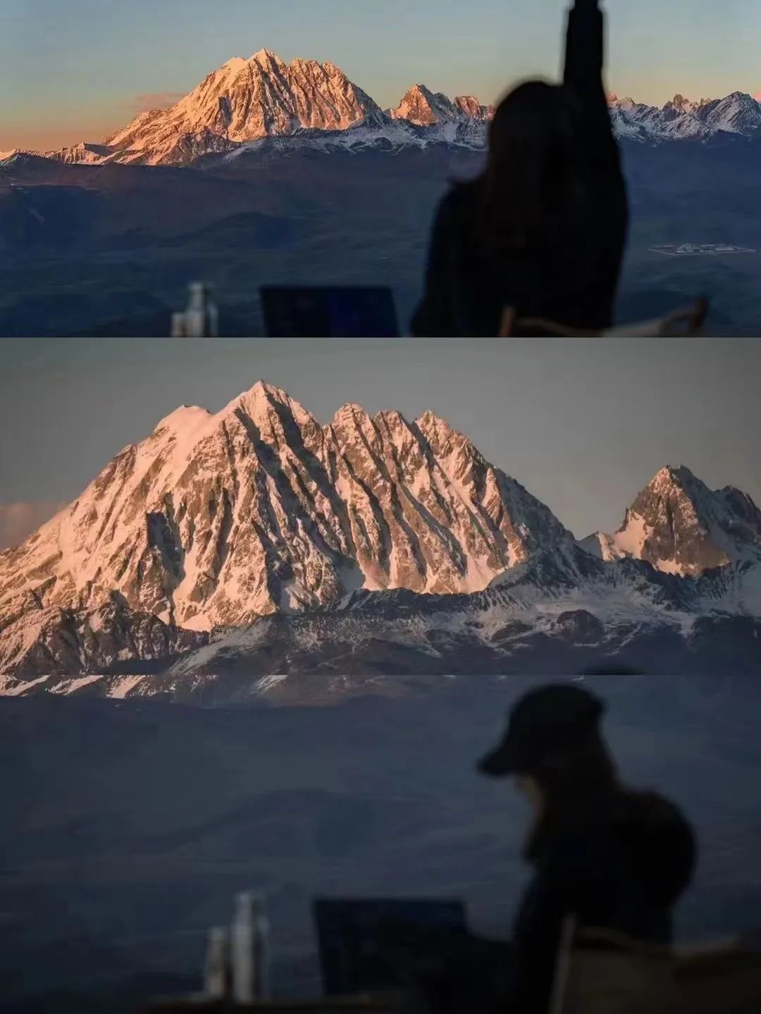 360°被雪山环绕,白天就已经非常漂亮了。可以在山顶看日落看贡嘎群峰的日照金山,还可以看满天繁星、银河。