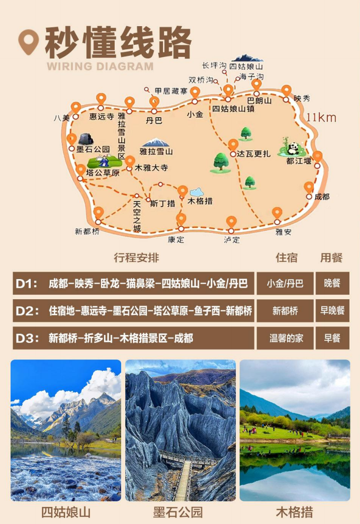 2、门票:四姑娘山双桥沟景区,墨石公园,木格措门票;