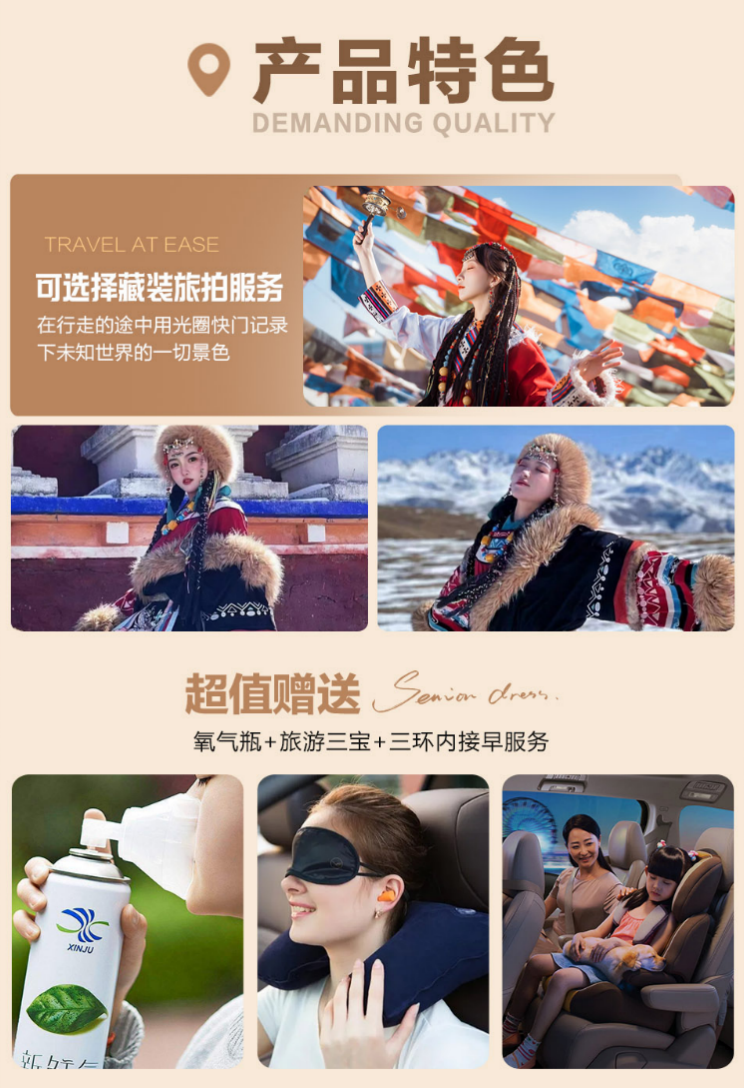 【产品说明】:为保障本线路产品的顺利成团,在您预订成交后,如无特殊原因,不可更改、取消,否则将按退团说明执行;请注意行程中的每一条温馨提示,请注意各景区张贴的游览须知。行程中停车加水、上厕所、用餐后、上车前均为自由活动时间,自由活动时间请自行负责自身人生安全及财产安全。此产品不适合休闲度假、享受酒店的客人;藏区旅游,请保持乐观情绪,如有心理负担会加重高原反应,延缓人体适应高原气候。行程内的时间仅供参考,具体以实际行车速度及相关路况及游客游览快慢为准;行程先后顺序在实际游览中可能会调整,但景点不减少,公交交通及景区的配套设施设备的容貌及卫生状况不属于旅行社的服务质量范畴,如有意见或建议可向相关主管部门反映。