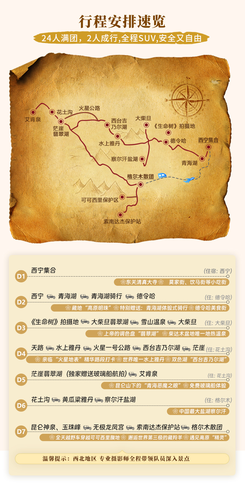 从首次启用摄影师带队,到纳入茫崖的深度探索,经过六年的优化和迭代,如今这条青海秘境已经开发得非常具有差异化,如果你想体验不一样的野性大西北,这条是首选。