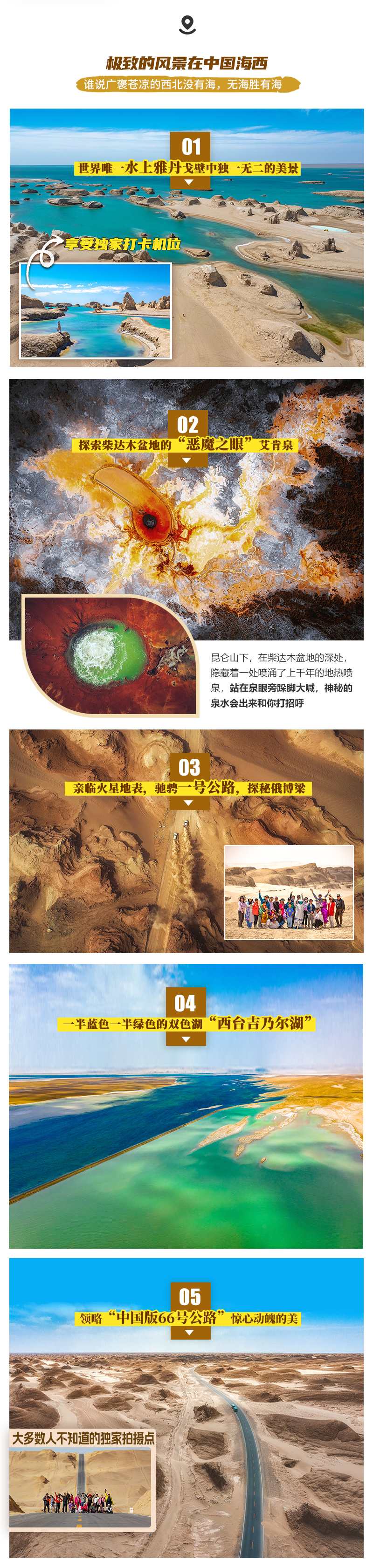 2.目前茫崖花土沟地区景点均属于未开发状态,景区接待能力有限,请小伙伴们提前准备自己的午餐,以防不可抗力因素无法按时回到市区补给;