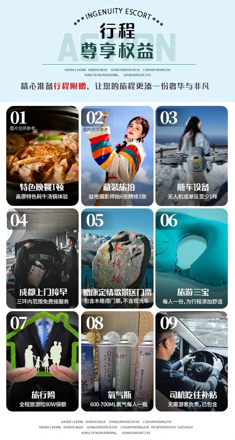 (4)赠送随车氧气1瓶+旅游三宝/人/份