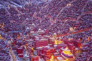 色达佛学院是世界上很大的藏传佛学院。常住的喇嘛有两万多人。每遇有佛事活动人数还会增加,最多时可达四万多人。这里的僧舍很壯观,如果你是初次到色达,其庞大的阵势往往会让你目瞪口呆;在佛学院最高的山峰上,有一个金碧辉煌的建筑,叫做“坛城”(音译)。它的上半部分是转经的地方,据说如果你有什么疾病,在这里转上一百圈就能够好;下面一层是转经筒,金色的圆筒在人们干枯的手转过之后留下一串悠长的嘎吱嘎吱的响声。在佛学院祈福、转经。