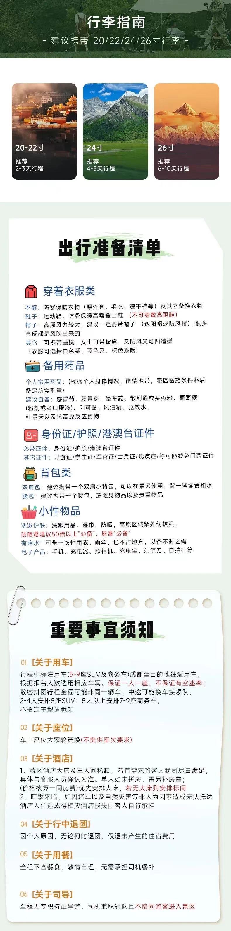 ■【特别说明】此行程仅供参考,本产品为自由行产品,行程所列途径景点,非必停点(根据当日行车路况及时间确定是否可以顺利前往),旅行社将会根据实际情况调整住宿地点和游览顺序。若因此产生的纠纷公司概不接受投诉。
