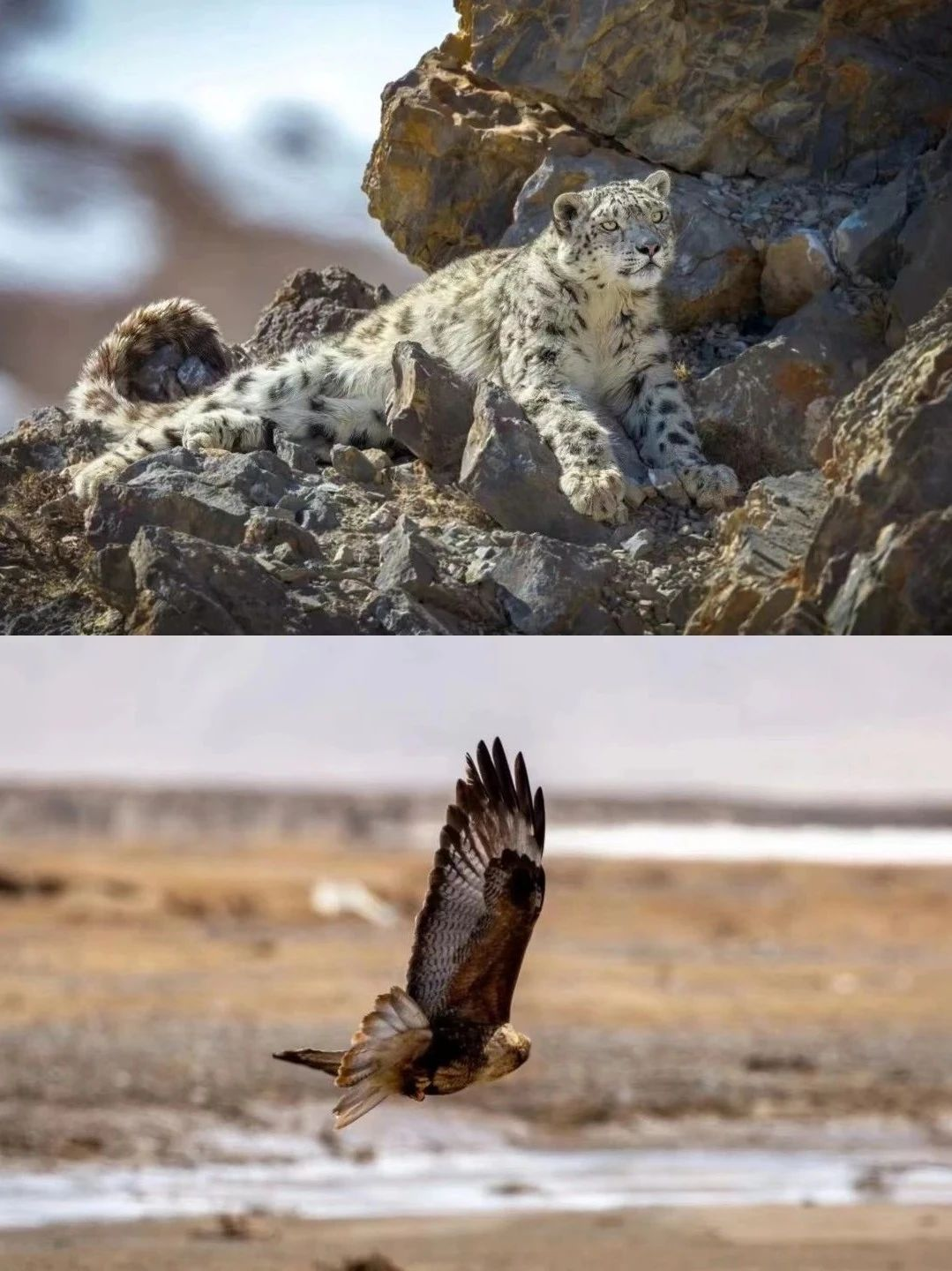“冬格措纳“的意思是“一千座山峰环绕的湖”,这里是一个世外桃源,群山阻隔下形成了独特的、相对温暖湿润的小气候,也造就了遗世独立的陡峭山峰交织丰美水草的圣湖美景,供养了玛多县最独特的高山裸岩生态系统及其生物链。这里的山脊侵蚀风化严重,【雪豹】完美融入了这片圣境。所以在冬格措纳湖区域,并不是访客找雪豹,而是访客被雪豹“观赏”。