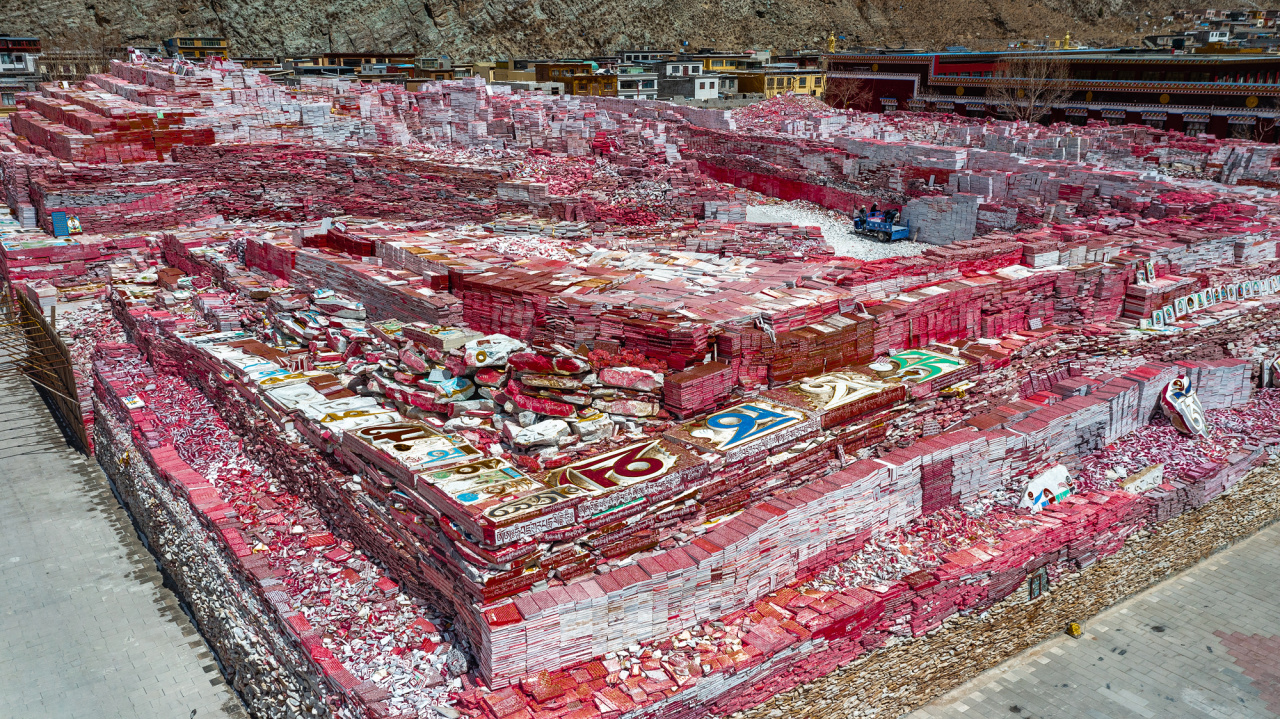 在藏区,大小不等的玛尼石经堆随处可见,然而在青海的玉树就有这样一处玛尼石堆,世所罕见。它将藏族人对灵石和佛教的崇拜做到了极致,也做到了世界之最。游览完神山之后我们即将来到玉树市的新寨村,这里的玛尼石堆经过300多年不间断的堆积,已经积累了刻着各种经文图案的玛尼石25亿块,真是气势恢宏。因此有个形象的名字:嘉那玛尼石经城。这里也被誉为世界上最大的祈福许愿之地,还被载入了吉尼斯世界纪录。