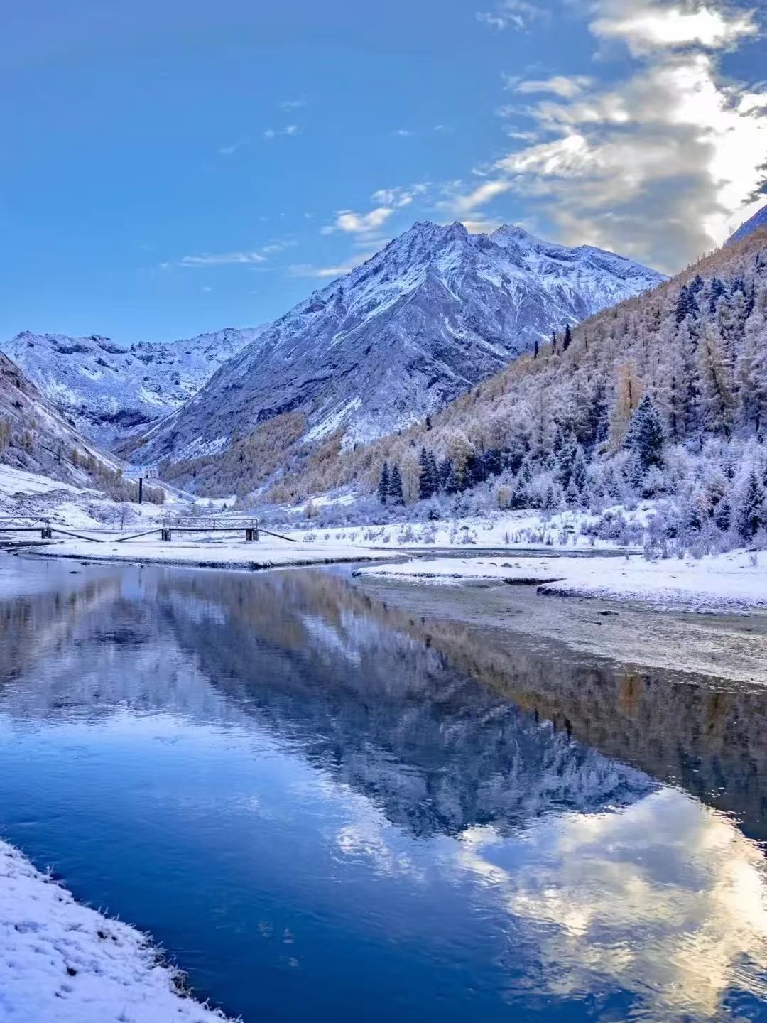 这是一片高原秘境河谷,雪山森林环抱,谷地平缓开阔,滩涂纵横交错,牛马在其中吃草放牧,一幅雪域田园牧歌画卷!不仅有海子和雪山,沿途还有各种的风景,如瀑布、溪流、森林、草甸、牧场等,这里是一个适合徒步、游玩,周边还有很多森林,七八月间也可以进入山林采摘也蘑菇。