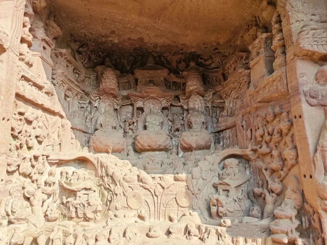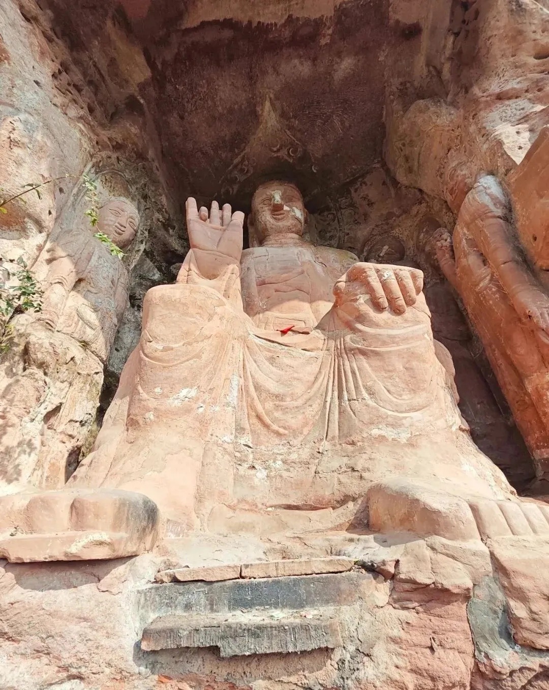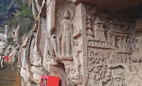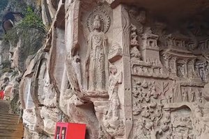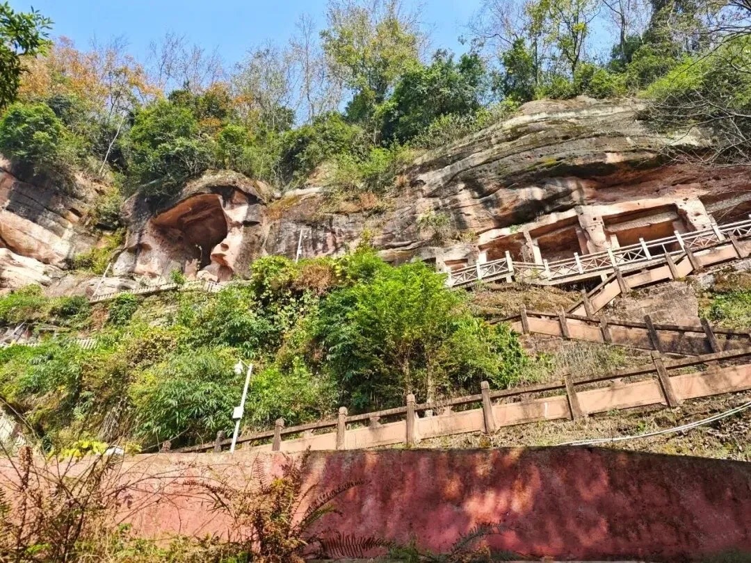 摩崖石刻,分为两部分,据当地村民说,未对外开放的部分是因为考察年代不详,所以还未对外开放,据说刻有历史较为久远的"飞仙图"。