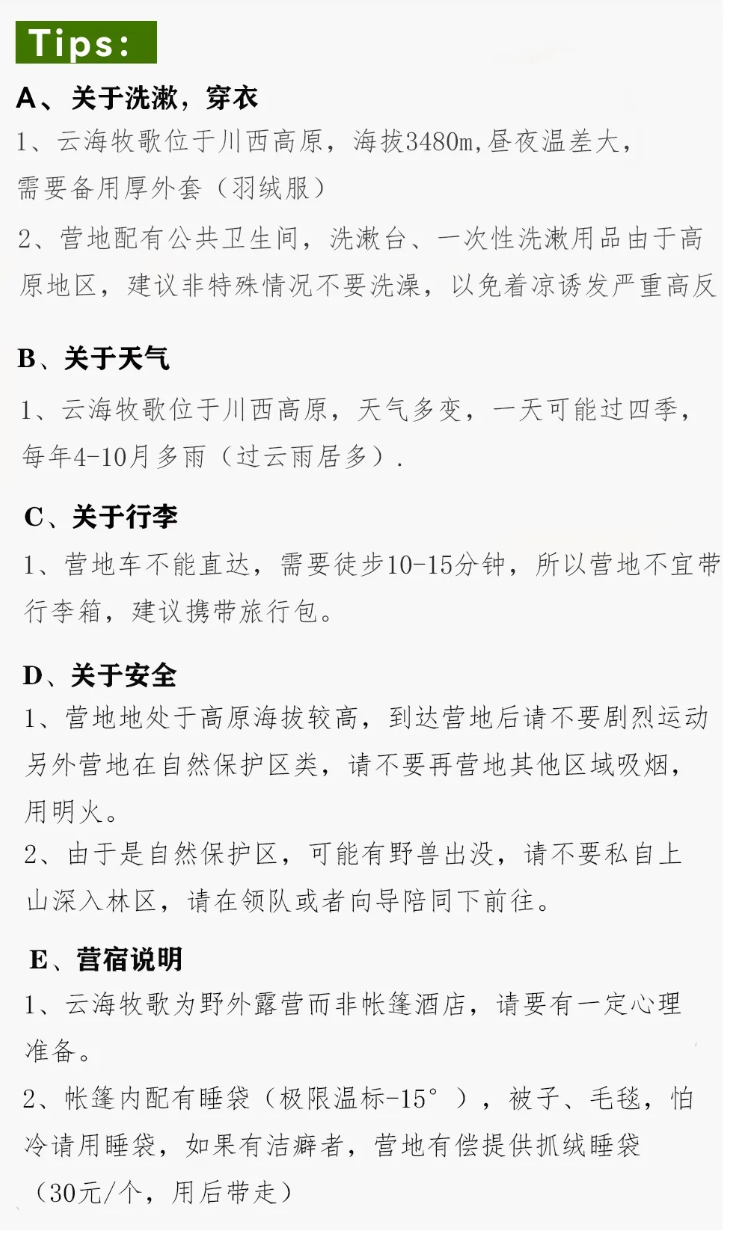 3、中专车:山下至营地中专60不含(人少则原车中专,填补车费亏空)。