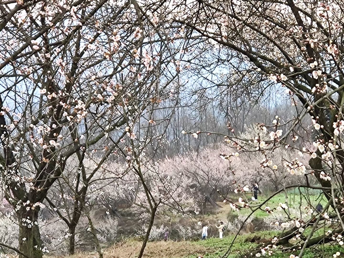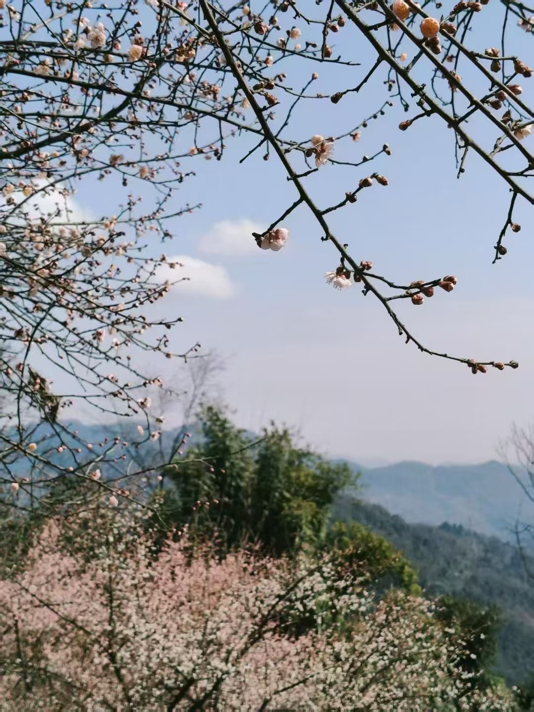 目前正是䢺江青梅花开的季节,在山披上一片片正开着,洁白或粉红,星星点点的青梅花装扮着正片山坳,成为了黑龙岗一道绝美靓丽的风景线,给原本冷清的山中增添了更多色彩。