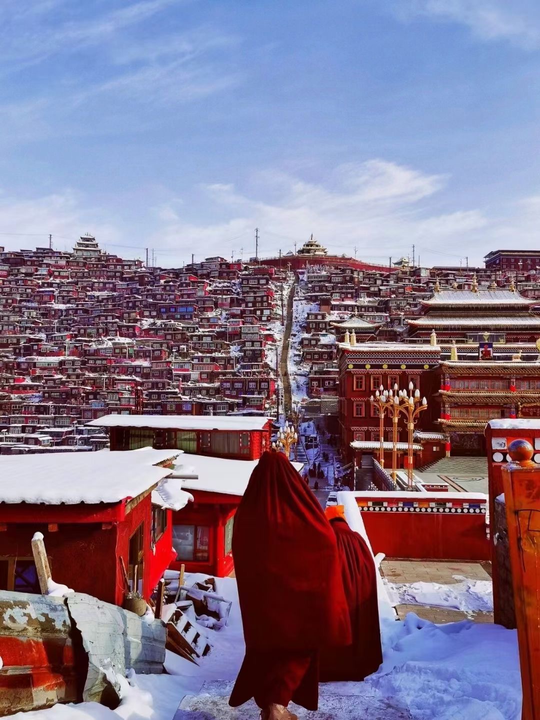这些成千上万的红色僧舍,都是由僧尼们亲手搭建,