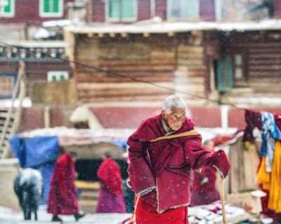 和她就这样开始同行,随处可见身披红袍的喇嘛和觉姆来来往往,空气里充满祥和的味道。