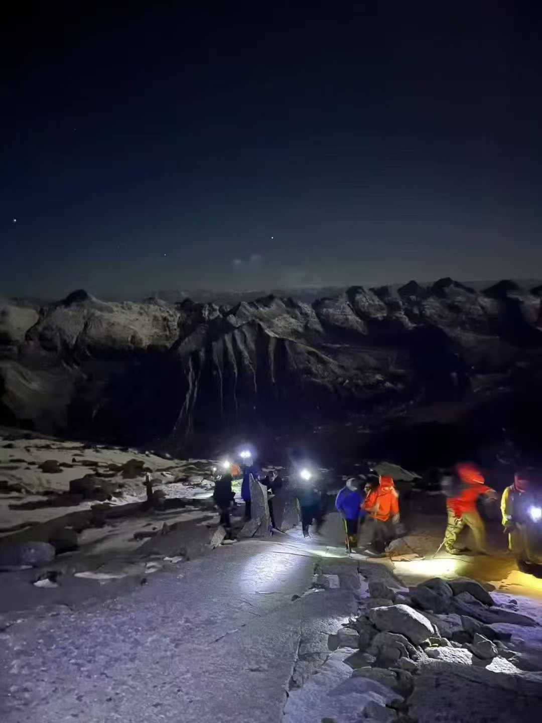 提供装备使用:冰爪+雪套+登山杖+头灯(需自备电池)。