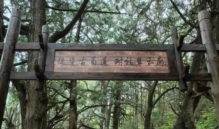 踏上金牛古道的青石阶,脚下是两千年前秦蜀相通的马蹄印,眼前是拦马墙苍劲的古柏。