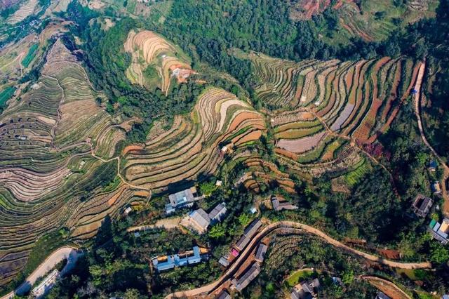 新山梯田最大特色在于它就是个处女地。不是旅游景区,也没有作为景区打造,视线所见的是实打实的纯正原生态耕作环境。