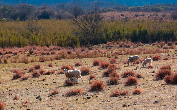 一大片金黄的草甸,配上蓝得一丝不染的天空,牛羊闲散地享受着冬日暖阳,随手一拍都是大片,简直太适合放松发呆了。