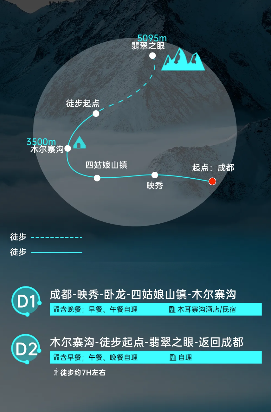 D2:木尔寨沟(凌晨2点出发冲顶)-徒步起点-翡翠之眼-返回成都