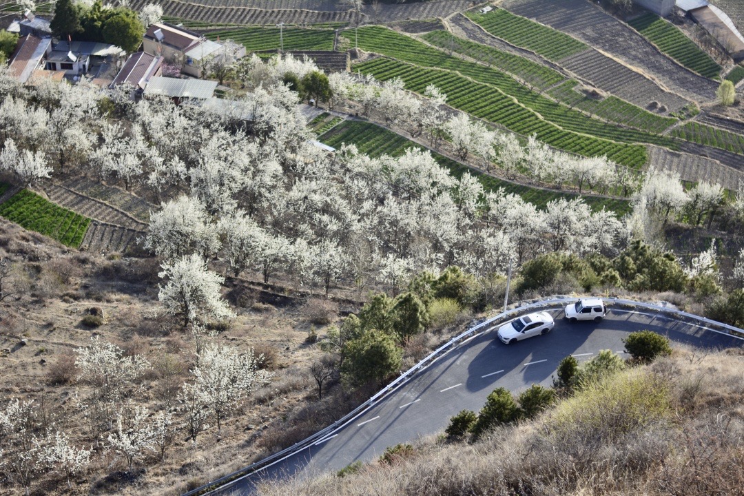 ▶ 在领队的带领下,观赏到初春梨花等争相开放,与绿油油麦田相互映衬,一路边走边拍,开始各种大片和抖音创作,这世外梨园是全世界范围内最大的原生态、高海拔、也是全球最佳位置的雪梨生态区,也是享有盛誉的四川第二届“最美花卉”观赏地。观光线路金川县城 → 勒乌马厂 → 沙耳神仙包观景台 → 咯尔金江、德胜村景点 → 庆宁乡松坪村观景台 → 金川县城全程5公里左右。