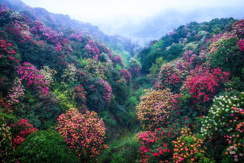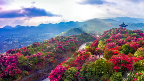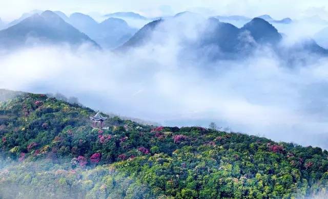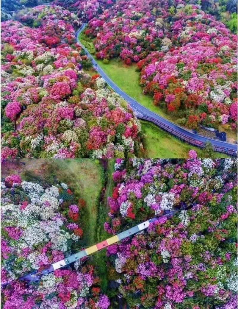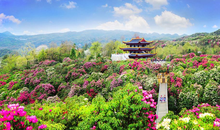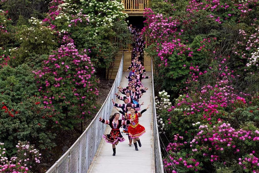 每年暮春时节,百里杜鹃花开成海,这个时候置身崇山峻岭之中,看腾挪跌宕、绵延百里的杜鹃花海,宛如人间仙境。