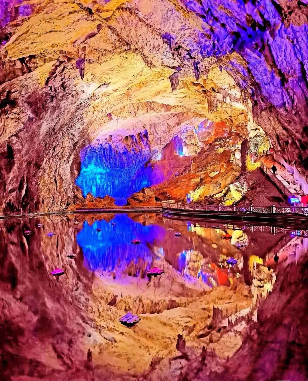 ▶洞内暗河可坐船,(船票10元自理)参观完洞穴后,预计11:30上车出发离开。沿途找地方午餐后开始返程,车程轻松,时间充足,避开返程高峰,预计下午19:00回到成都,结束愉快的贵州花事活动。