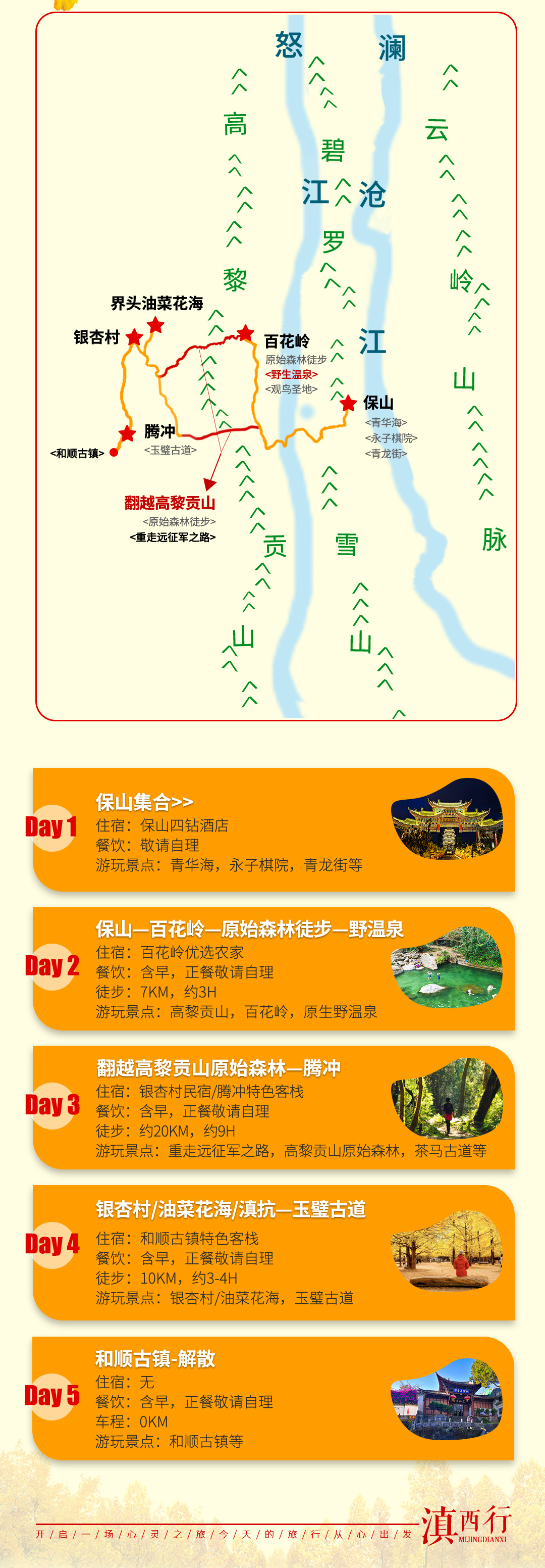 1、到保山/腾冲的往返大交通自理;